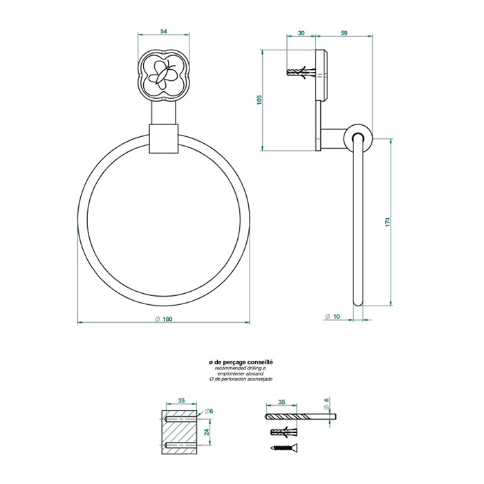 THG CAPUCINE VERT DECOR PLATINE Полотенцедержатель-кольцо 18см., декор зеленый, цвет: хром коллекции Capucine vert можно купить по розничной цене в нашем шоу-руме в Москве по адресу ул. Дениса Давыдова, д. 4 или через наш интернет-магазин StudioArdo.