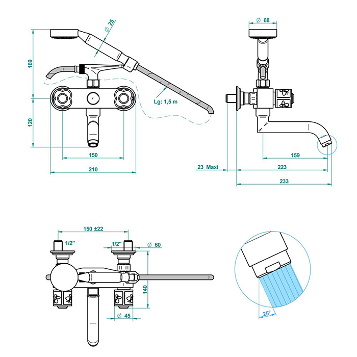 THG CAPUCINE VERT DECOR PLATINE Смеситель для ванны настенный, с ручным душем и шлангом 1500 мм., декор платина/зеленый, цвет: хром коллекции Capucine vert можно купить по розничной цене в нашем шоу-руме в Москве по адресу ул. Дениса Давыдова, д. 4 или через наш интернет-магазин StudioArdo.