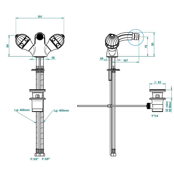 THG Cheverny Onyx noir Смеситель для биде, 1 отв., цвет: золото/оникс