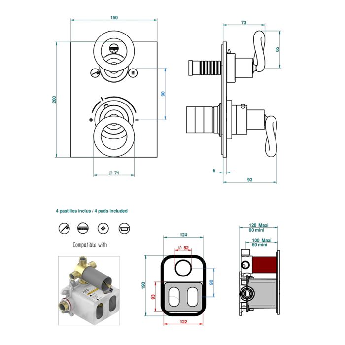THG Collection O Смеситель для душа, встраиваемый, термостатический, с переключателем на 3 потока, цвет: Soft matt gold коллекции Collection O можно купить по розничной цене в нашем шоу-руме в Москве по адресу ул. Дениса Давыдова, д. 4 или через наш интернет-магазин StudioArdo.