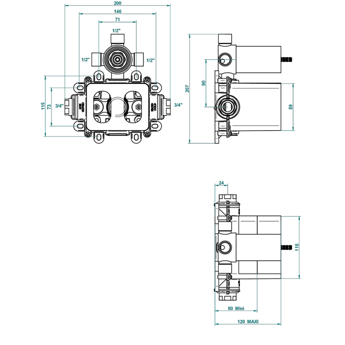 THG Термостат 3/4" - 60 л/мин с восковым картриджем и коробкой для встраивания, для трёх потребителей коллекции Комплектующие THG можно купить по розничной цене в нашем шоу-руме в Москве по адресу ул. Дениса Давыдова, д. 4 или через наш интернет-магазин StudioArdo.