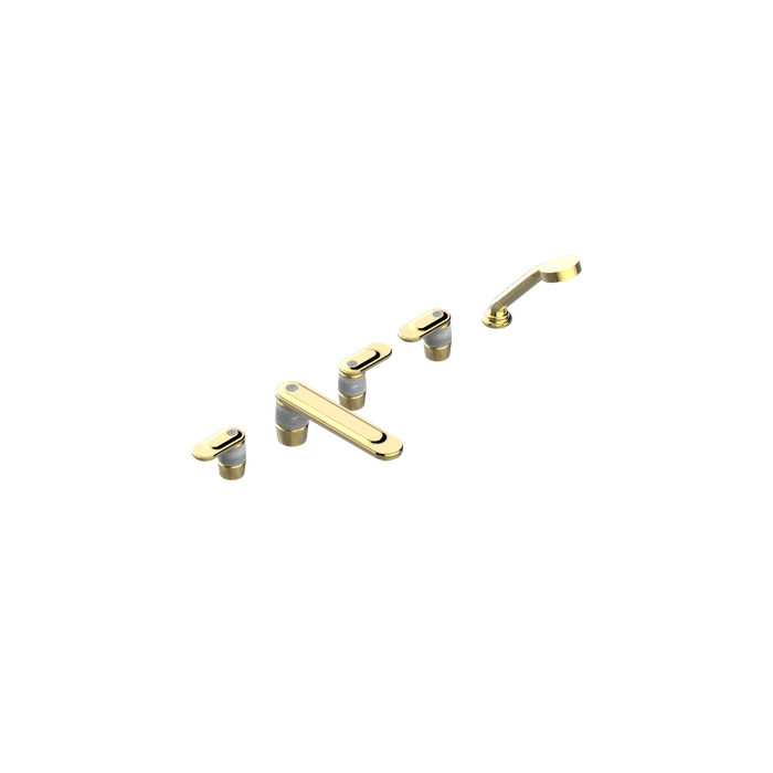 THG CORVAIR A MANETTES FIOR DI BOSCO Смеситель на борт ванны на 5 отверстий, двойной, с ручным душем, цвет: полированное золото