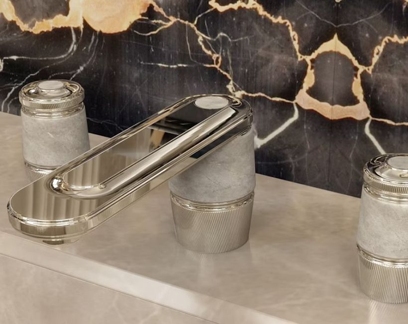 THG CORVAIR A MANETTES FIOR DI BOSCO Смеситель на борт ванны на 5 отверстий, двойной, с ручным душем, цвет: хром