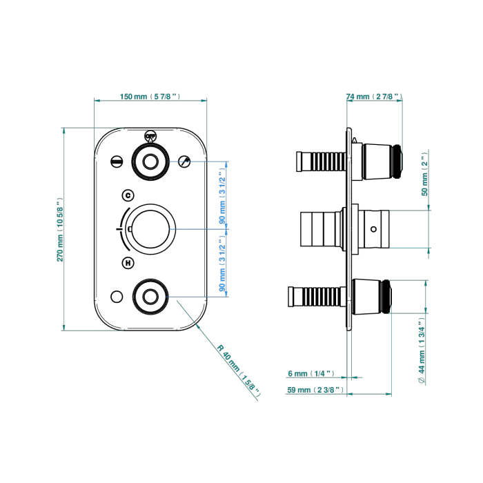THG CORVAIR FIOR DI BOSCO Смеситель для душа встраиваемый, термостатическ, с запорным вентилем и перекл на 2 полож, внешняя часть, цвет: полиров золото