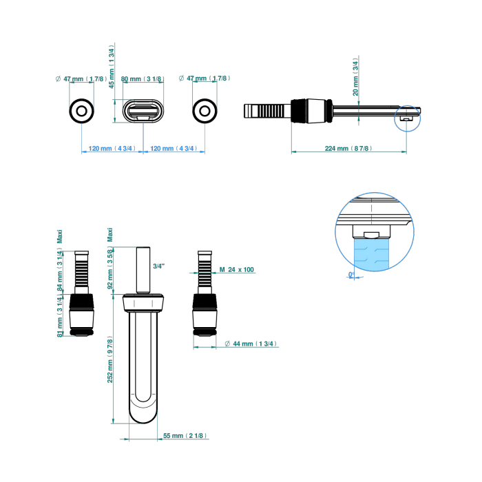 THG CORVAIR FIOR DI BOSCO Смеситель для раковины настенный, c 2 вентилями, внешняя часть, цвет: полированное золото