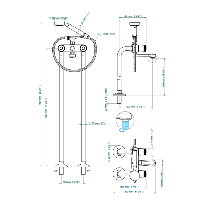 THG CORVAIR FIOR DI BOSCO Смеситель для ванны напольный, с ручным душем и шлангом 1500 мм., цвет: хром коллекции Corvair Fior di Bosco можно купить по розничной цене в нашем шоу-руме в Москве по адресу ул. Дениса Давыдова, д. 4 или через наш интернет-магазин StudioArdo.