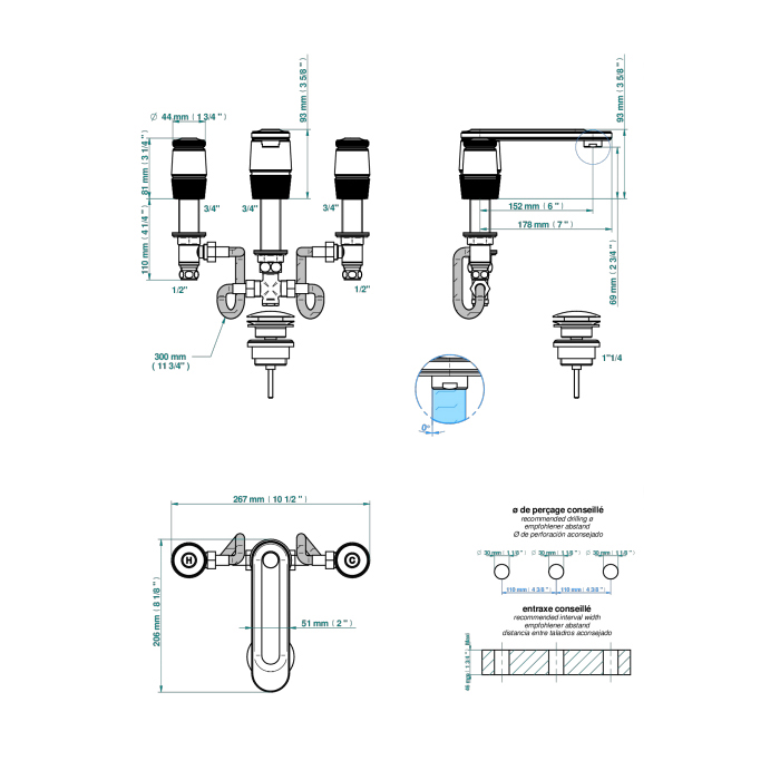 THG CORVAIR Смеситель для раковины на 3 отверстия, с донным клапаном, цвет: полированное золото