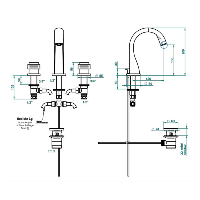 THG Diplomate grooved rings Смеситель для раковины на 3 отверстия, с донным клапаном, цвет: хром/золото коллекции Diplomate grooved rings можно купить по розничной цене в нашем шоу-руме в Москве по адресу ул. Дениса Давыдова, д. 4 или через наш интернет-магазин StudioArdo.