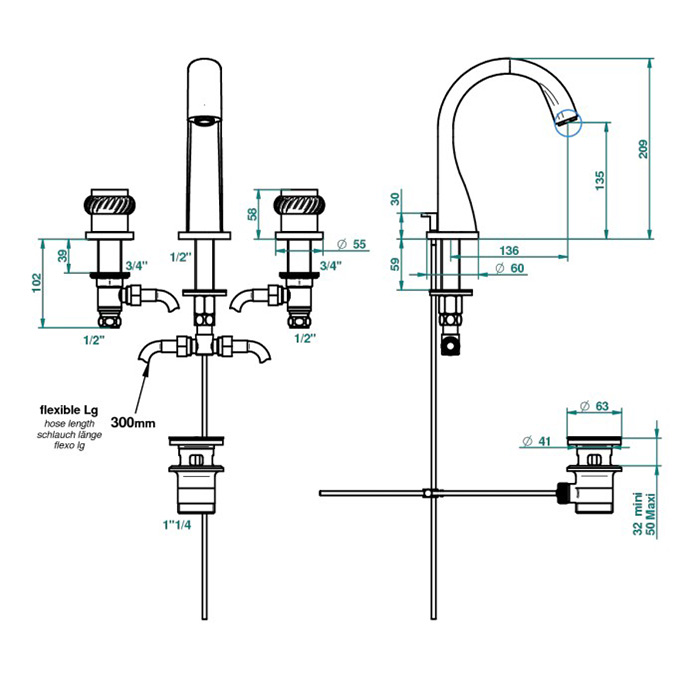 THG Diplomate Roped Rings Смеситель для раковины на 3 отверстия, с донным клапаном, цвет: хром/золото коллекции Diplomate Roped Rings можно купить по розничной цене в нашем шоу-руме в Москве по адресу ул. Дениса Давыдова, д. 4 или через наш интернет-магазин StudioArdo.