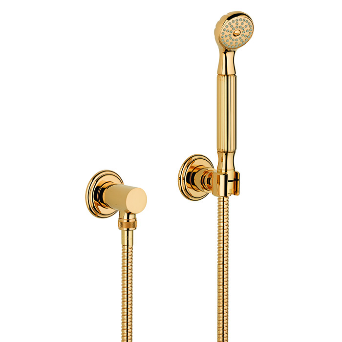 THG Dragon Sun Душевой комплект с ручным душем, шлангом 1500 мм., подводом воды и держателем, цвет: полированное золото коллекции Смесители THG Dragon Sun можно купить по розничной цене в нашем шоу-руме в Москве по адресу ул. Дениса Давыдова, д. 4 или через наш интернет-магазин StudioArdo.