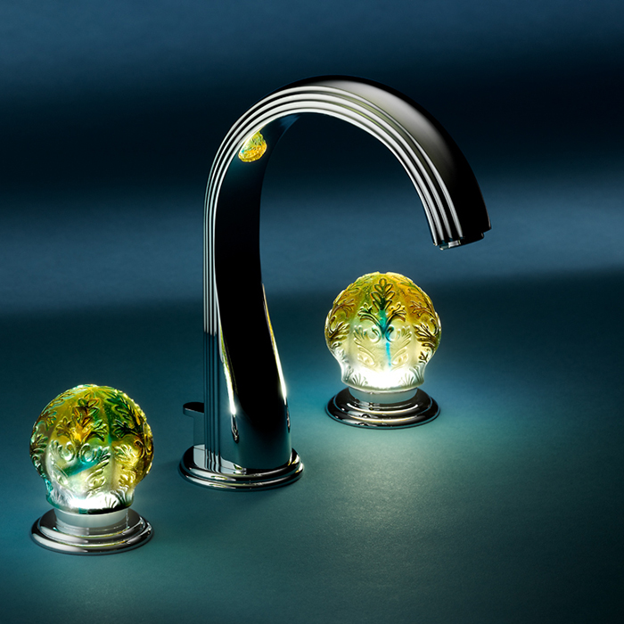 THG Flore Смеситель для раковины на 3 отверстия, ручки с подсветкой, с донным клапаном, цвет: хром коллекции Flore можно купить по розничной цене в нашем шоу-руме в Москве по адресу ул. Дениса Давыдова, д. 4 или через наш интернет-магазин StudioArdo.