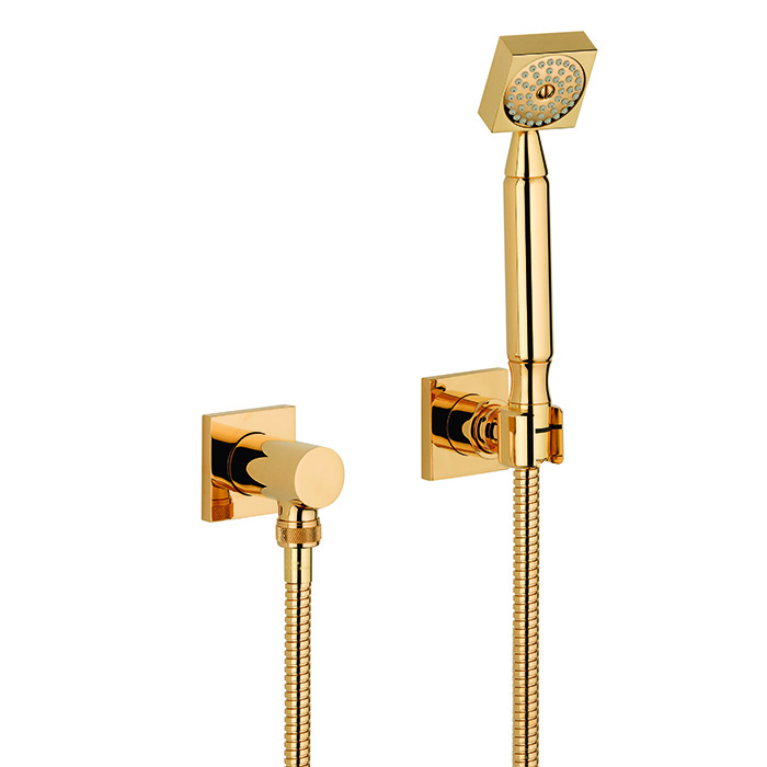 THG Ginkgo Душевой комплект с ручным душем, шланг 1500 мм., держатель и подвод воды, цвет: полированное золото коллекции Ginkgo можно купить по розничной цене в нашем шоу-руме в Москве по адресу ул. Дениса Давыдова, д. 4 или через наш интернет-магазин StudioArdo.