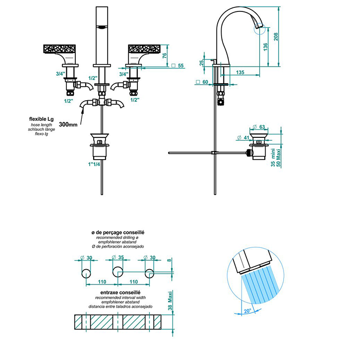 THG Ginkgo Смеситель для раковины, 3 отв., цвет: золото/хрусталь коллекции Ginkgo можно купить по розничной цене в нашем шоу-руме в Москве по адресу ул. Дениса Давыдова, д. 4 или через наш интернет-магазин StudioArdo.