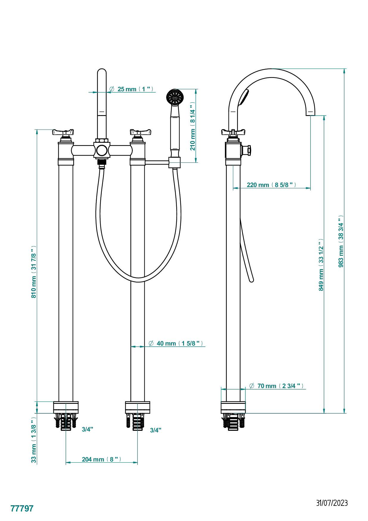 Смеситель для ванны THG Hamptons, напольный, с душем подключение вертикальное коллекции Смесители THG Hamptons можно купить по розничной цене в нашем шоу-руме в Москве по адресу ул. Дениса Давыдова, д. 4 или через наш интернет-магазин StudioArdo.