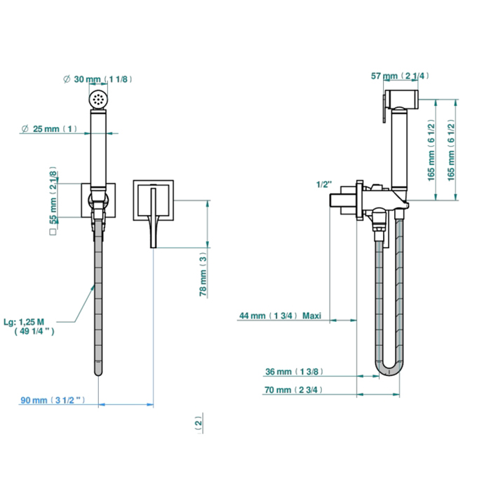 THG Hamptons Гигиенический душ в комплекте с встраиваемым однорычажным смесител, шланг 125см, держатель, с подвод воды, внешн часть, цвет: Polished nickel