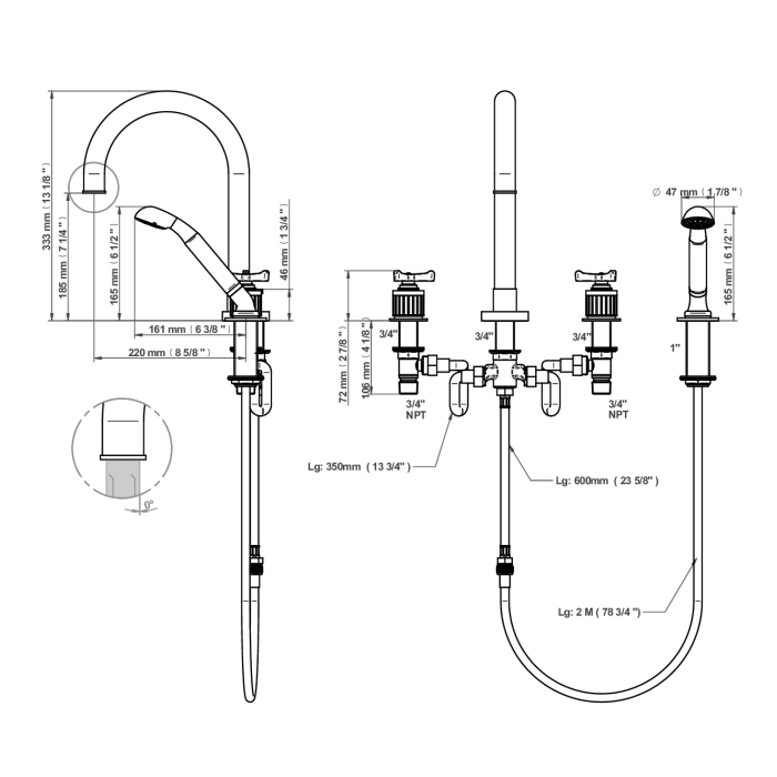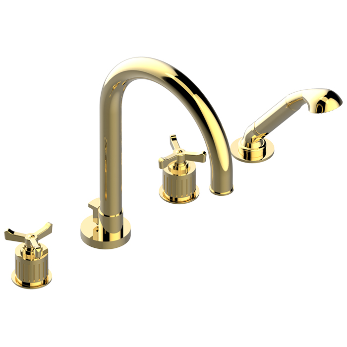 THG Hamptons Смеситель на борт ванны, 4 отв., с ручным душем, цвет: золото