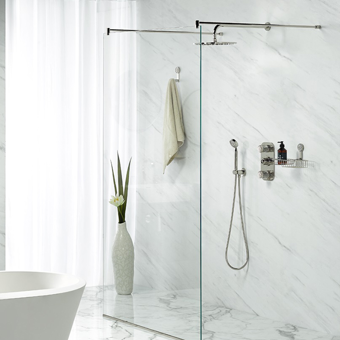 THG Hirondelles Platinum Stamped Душевой комплект: термостатический смеситель, ручной душ, верхний душ Ø30см, держатель с подводом воды и шланг 1500 мм, цвет: Polished nickel коллекции Смесители THG Hirondelles Platinum Stamped можно купить по розничной цене в нашем шоу-руме в Москве по адресу ул. Дениса Давыдова, д. 4 или через наш интернет-магазин StudioArdo.