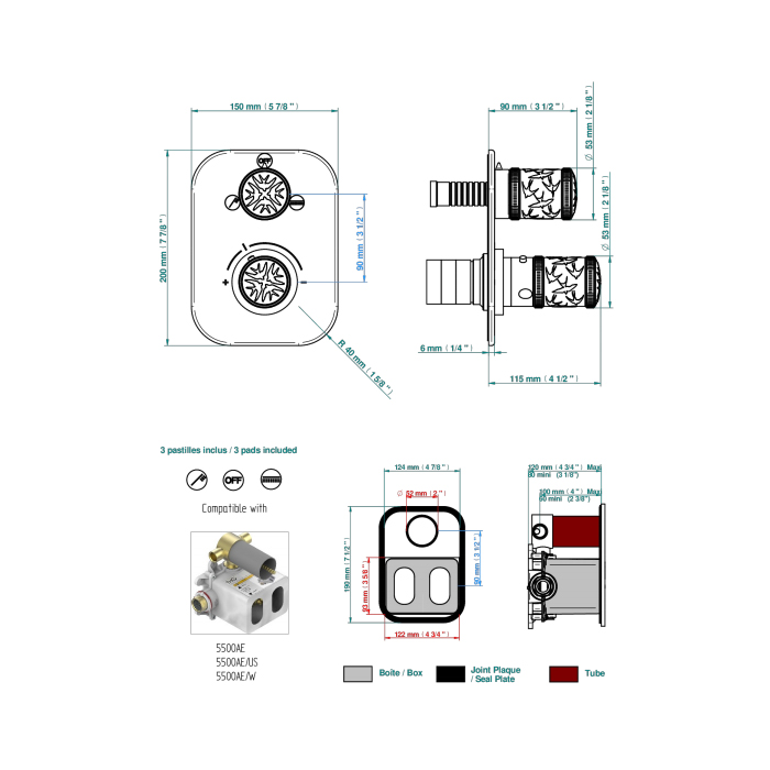 THG Hirondelles Смеситель для душа, встраиваемый, термостатический, цвет: Polished gold