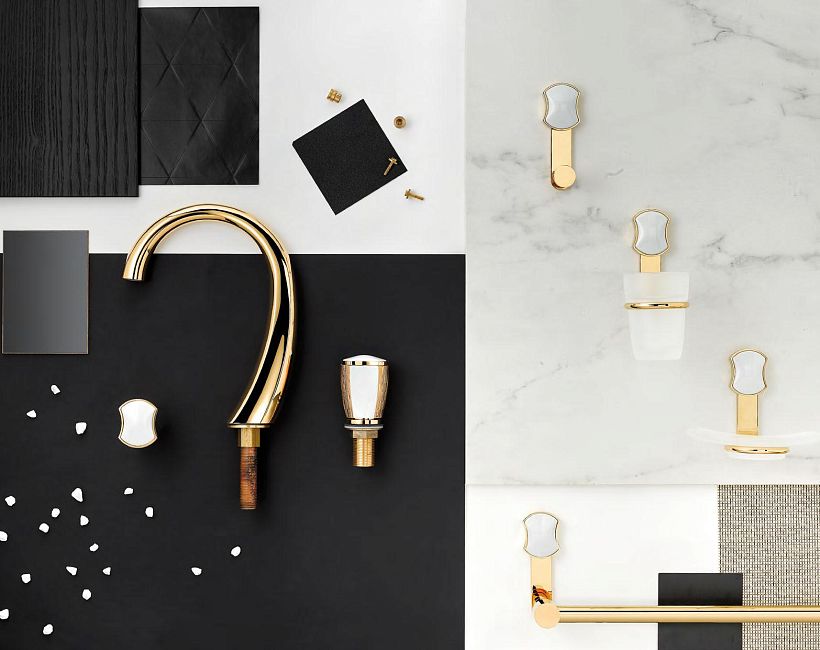 THG Infini Porcelaine Blanche Смеситель для душа, встраиваемый, термостатический, с запорным вентилем, внешняя часть, цвет: Matt gold PVD коллекции Infini white porcelain можно купить по розничной цене в нашем шоу-руме в Москве по адресу ул. Дениса Давыдова, д. 4 или через наш интернет-магазин StudioArdo.