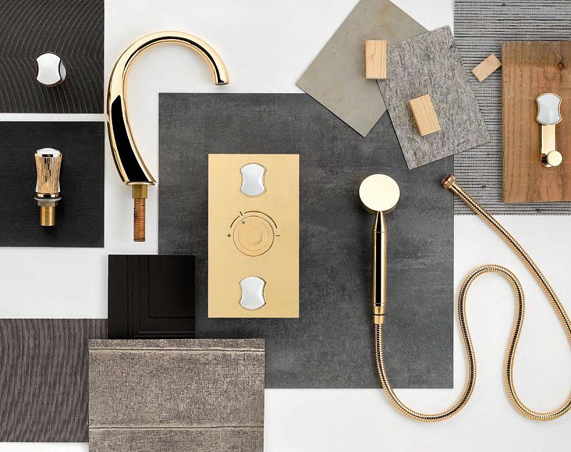 THG Infini Porcelaine Blanche Смеситель для душа, встраиваемый, термостатический, с запорным вентилем, внешняя часть, цвет: Matt gold PVD
