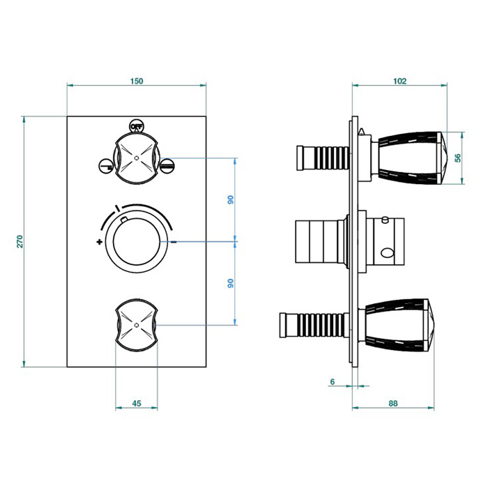 THG Infini white porcelain with platinum decor Смеситель для душа встраиваемый, термостатический, с запорным вент и переключ на 2 потока, внешн часть, цвет хром