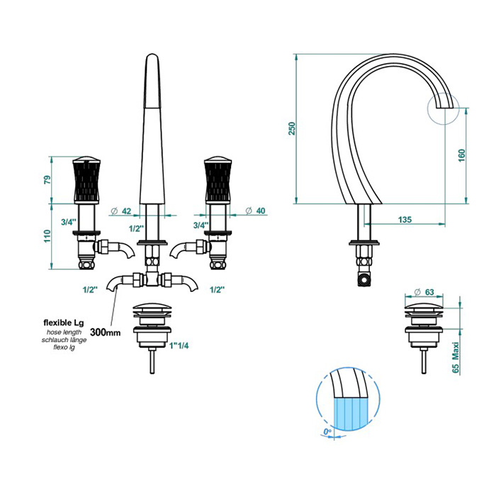 THG Infini white porcelain with platinum decor Смеситель для раковины на 3 отверстия, с донным клапаном, цвет: хром коллекции Infini white porcelain with platinum decor можно купить по розничной цене в нашем шоу-руме в Москве по адресу ул. Дениса Давыдова, д. 4 или через наш интернет-магазин StudioArdo.