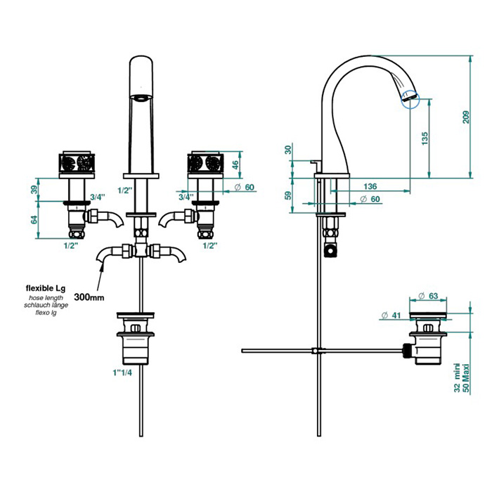 THG Island Смеситель для раковины на 3 отверстия, ручки с подсветкой, с донным клапаном, цвет: Soft gold коллекции Island можно купить по розничной цене в нашем шоу-руме в Москве по адресу ул. Дениса Давыдова, д. 4 или через наш интернет-магазин StudioArdo.