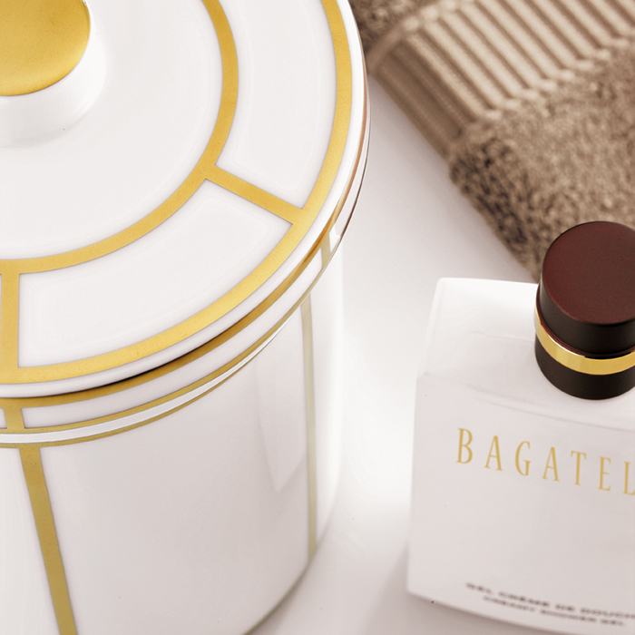 THG ITHAQUE DECOR OR Керамическая банка с крышкой, декор золото, цвет: белый коллекции Аксессуары THG Ithaque decor or можно купить по розничной цене в нашем шоу-руме в Москве по адресу ул. Дениса Давыдова, д. 4 или через наш интернет-магазин StudioArdo.