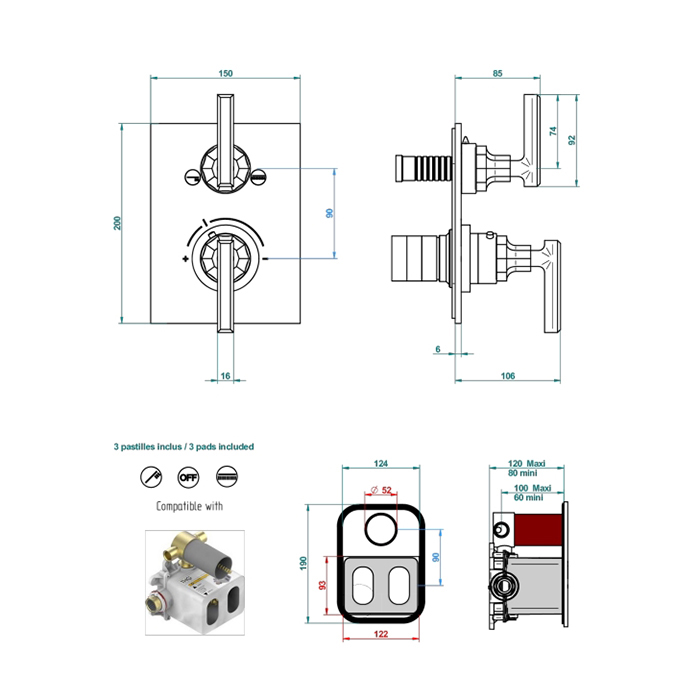 THG Les Ondes àe; manettes Смеситель для душа, термостатический, с переключателем на 2 потока, цвет: Matt nickel