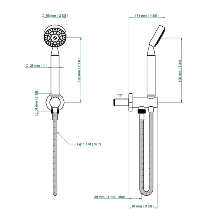 THG Les Ondes Душевой набор: с ручным душем, настенным держателем, подводом воды и шлангом 150см., цвет: Soft matt gold
