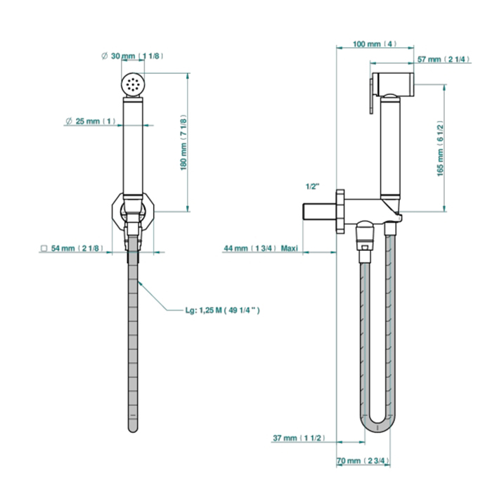 THG Les Ondes Гигиенический душ, с настенным держателем, подводом воды и шлангом 125см., цвет: Matt nickel
