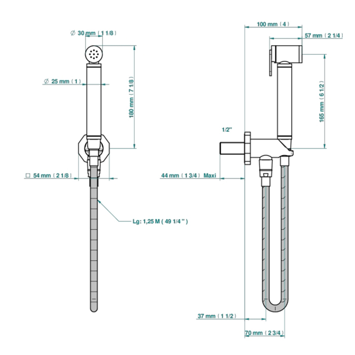 THG Les Ondes Гигиенический душ, с настенным держателем, с подводом воды и шлангом 125см., цвет: Soft matt gold