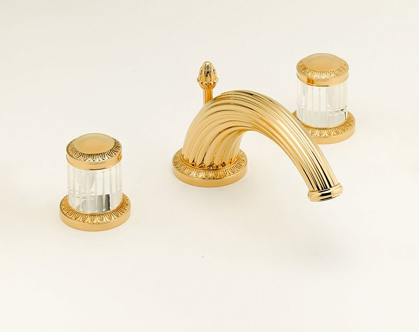 THG Malmaison crystal Смеситель для раковины на 3 отверстия, с донным клапаном, цвет: состаренный никель