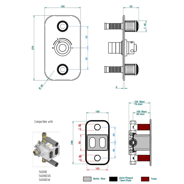 THG Malmaison metal Смеситель для душа встраиваемый, термостатический, с 2 запорными вентилями, внешняя часть, цвет: состаренный никель