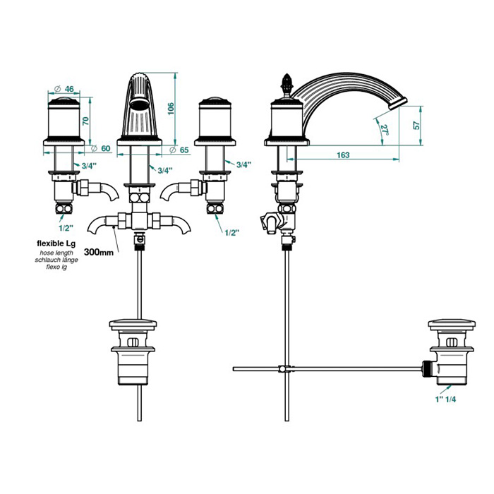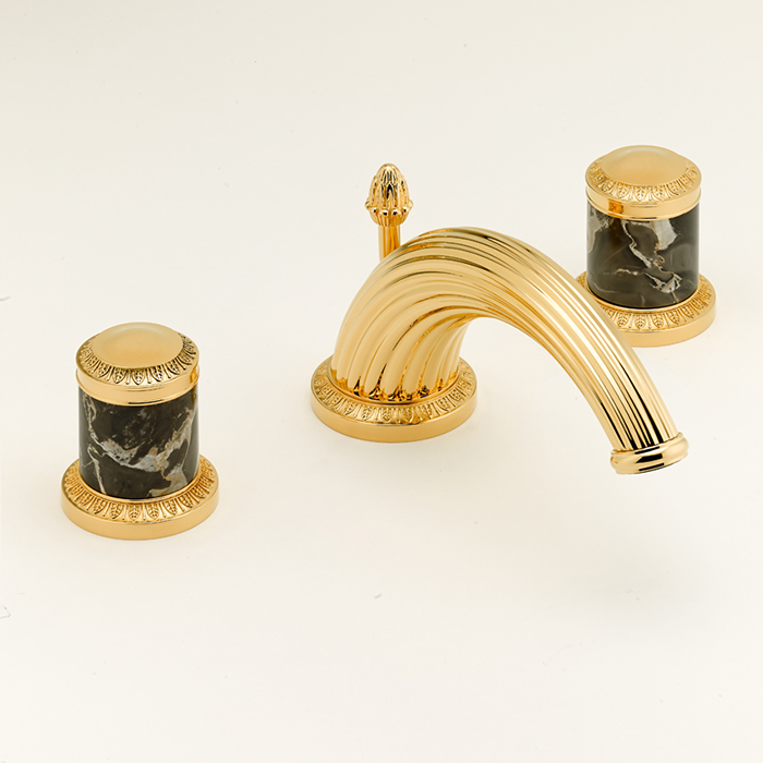 THG Malmaison Portoro Смеситель для раковины на 3 отверстия, с донным клапаном, цвет: полированное золото коллекции Malmaison Portoro можно купить по розничной цене в нашем шоу-руме в Москве по адресу ул. Дениса Давыдова, д. 4 или через наш интернет-магазин StudioArdo.