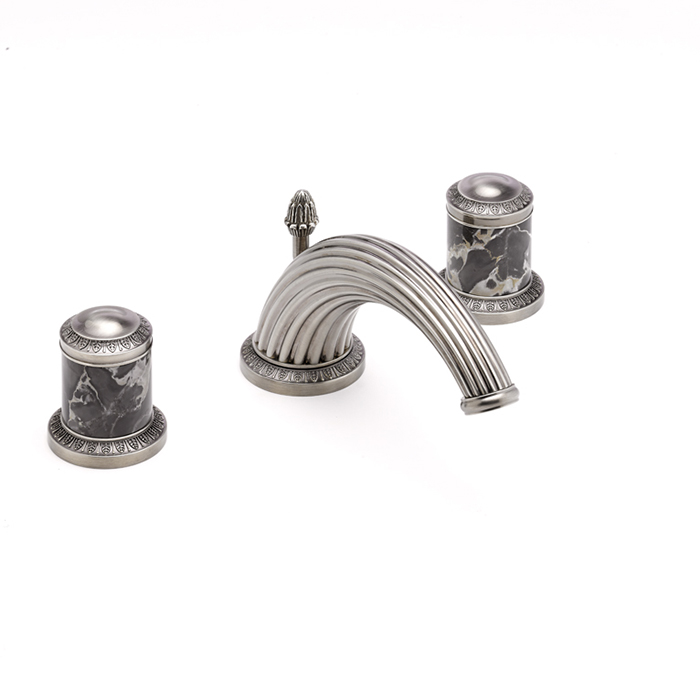 THG Malmaison Portoro Смеситель для раковины на 3 отверстия, с донным клапаном, цвет: состаренный никель коллекции Смесители THG Malmaison Portoro можно купить по розничной цене в нашем шоу-руме в Москве по адресу ул. Дениса Давыдова, д. 4 или через наш интернет-магазин StudioArdo.