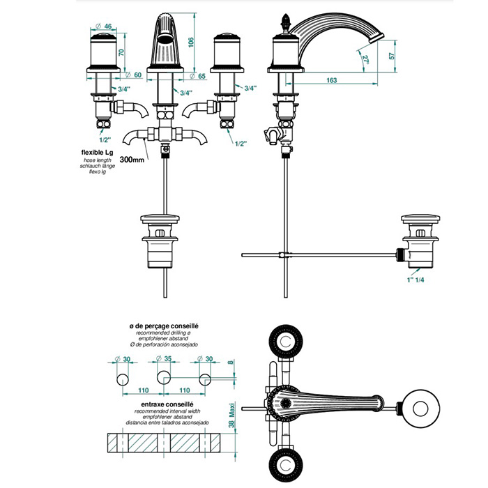 THG Malmaison Portoro Смеситель для раковины на 3 отверстия, с донным клапаном, цвет: состаренный никель коллекции Malmaison Portoro можно купить по розничной цене в нашем шоу-руме в Москве по адресу ул. Дениса Давыдова, д. 4 или через наш интернет-магазин StudioArdo.