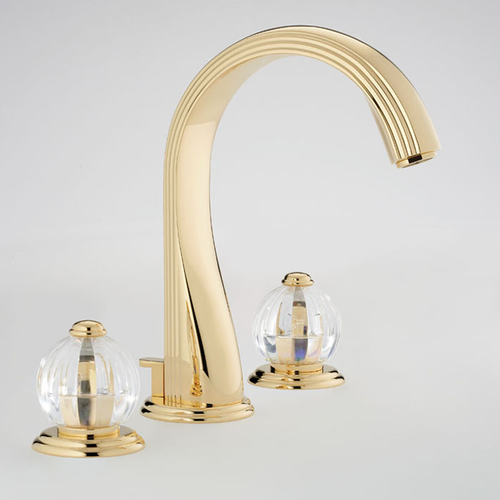 THG Mandarine clear crystal Смеситель для раковины на 3 отверстия, с донным клапаном, цвет: полированное золото коллекции Смесители THG Mandarine clear crystal можно купить по розничной цене в нашем шоу-руме в Москве по адресу ул. Дениса Давыдова, д. 4 или через наш интернет-магазин StudioArdo.