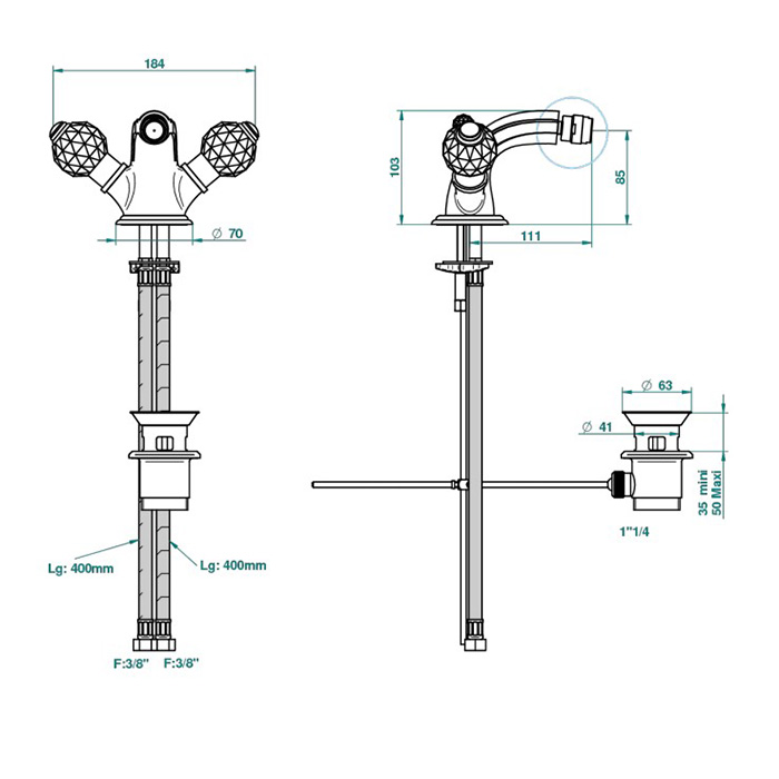 THG Mandarine Cristallia Diamant Смеситель для биде на 1 отверстие, с донным клапаном, цвет: полированное золото