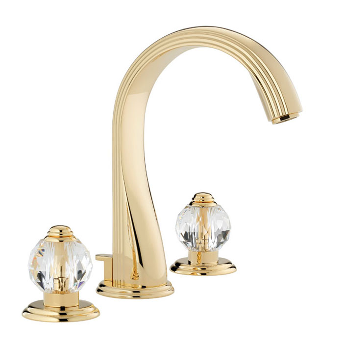 THG Mandarine Cristallia Diamant Смеситель для раковины на 3 отверстия, с донным клапаном, цвет: полированное золото