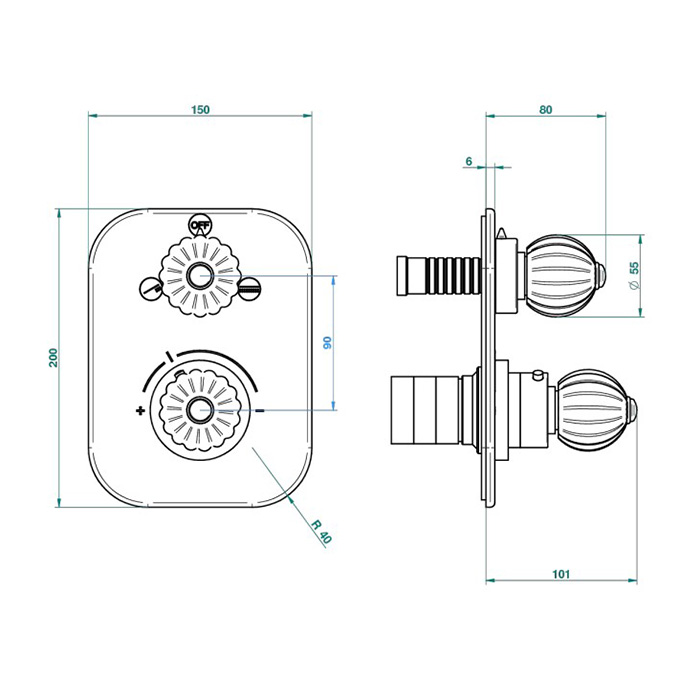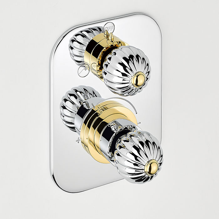 THG Mandarine metal Смеситель для душа встраиваемый, термостатический, с переключателем на 2 положения, внешняя часть, цвет: хром/золото коллекции Mandarine metal можно купить по розничной цене в нашем шоу-руме в Москве по адресу ул. Дениса Давыдова, д. 4 или через наш интернет-магазин StudioArdo.