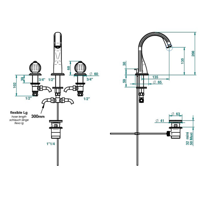 THG Mandarine metal Смеситель для раковины на 3 отверстия, с донным клапаном, цвет: хром коллекции Mandarine metal можно купить по розничной цене в нашем шоу-руме в Москве по адресу ул. Дениса Давыдова, д. 4 или через наш интернет-магазин StudioArdo.