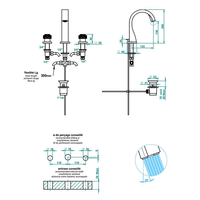 THG Masque de Femme Solaire Смеситель для раковины, 3 отв., цвет: хром