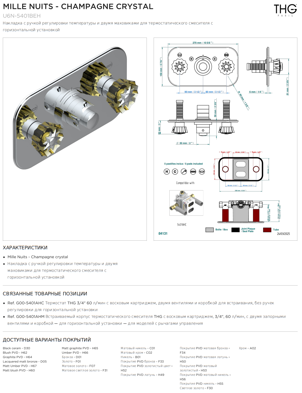 Накладка THG Mille Nuits - Champagne crystal с ручкой регулировки температуры и двумя маховиками для термостатического смесителя с горизонтальной установкой коллекции Смесители THG Mille Nuits - Champagne crystal можно купить по розничной цене в нашем шоу-руме в Москве по адресу ул. Дениса Давыдова, д. 4 или через наш интернет-магазин StudioArdo.