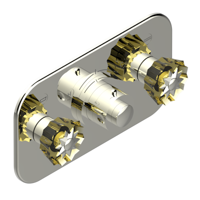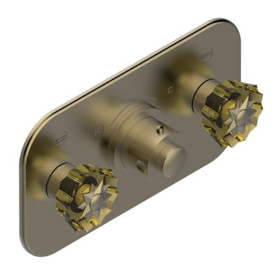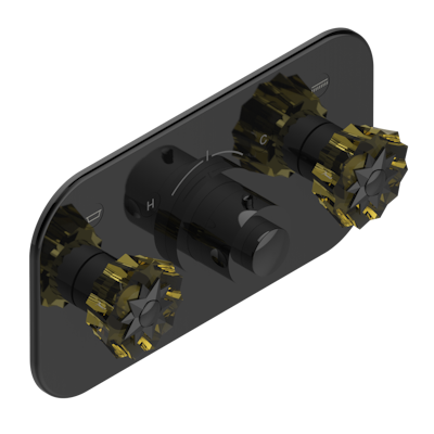 Накладка THG Mille Nuits - Champagne crystal с ручкой регулировки температуры и двумя маховиками для термостатического смесителя с горизонтальной установкой