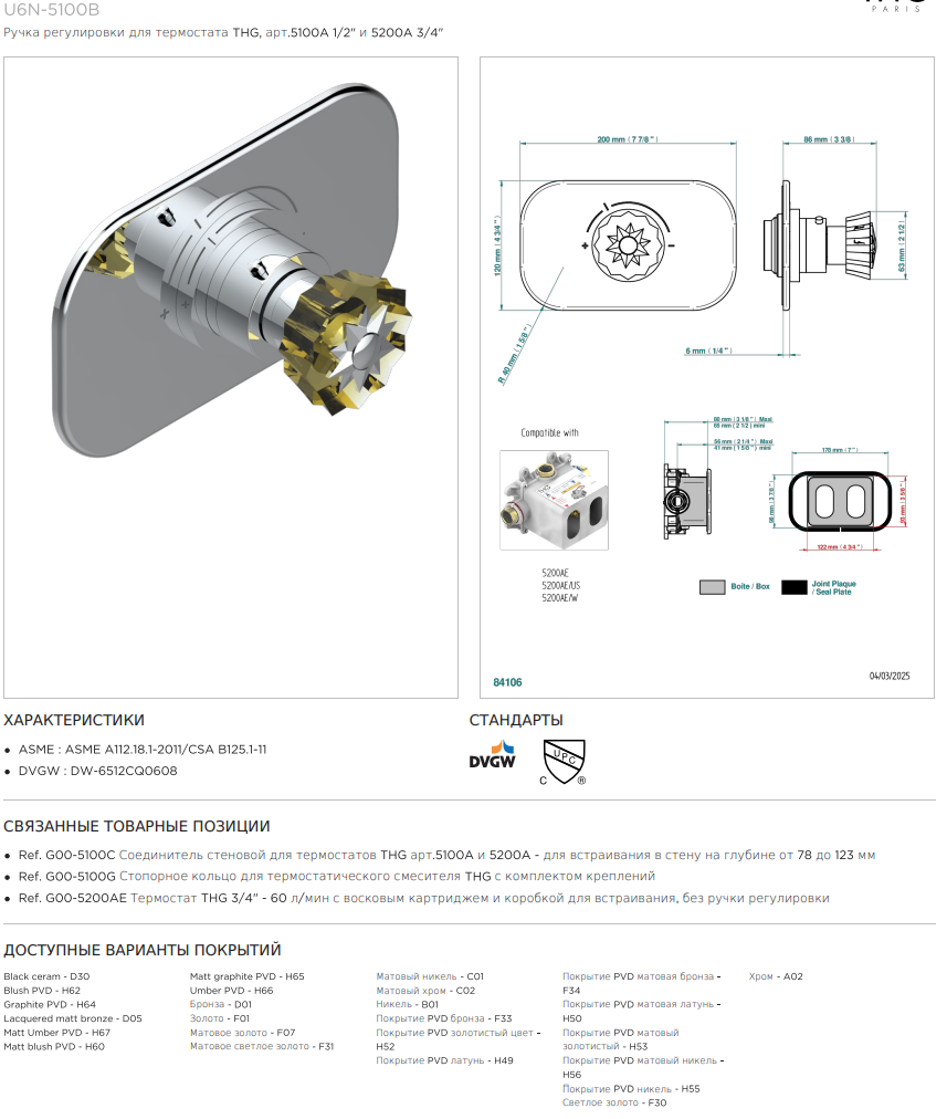 Ручка регулировки THG Mille Nuits - Champagne crystal для термостата THG, арт.5100A 1/2" и 5200A 3/4"