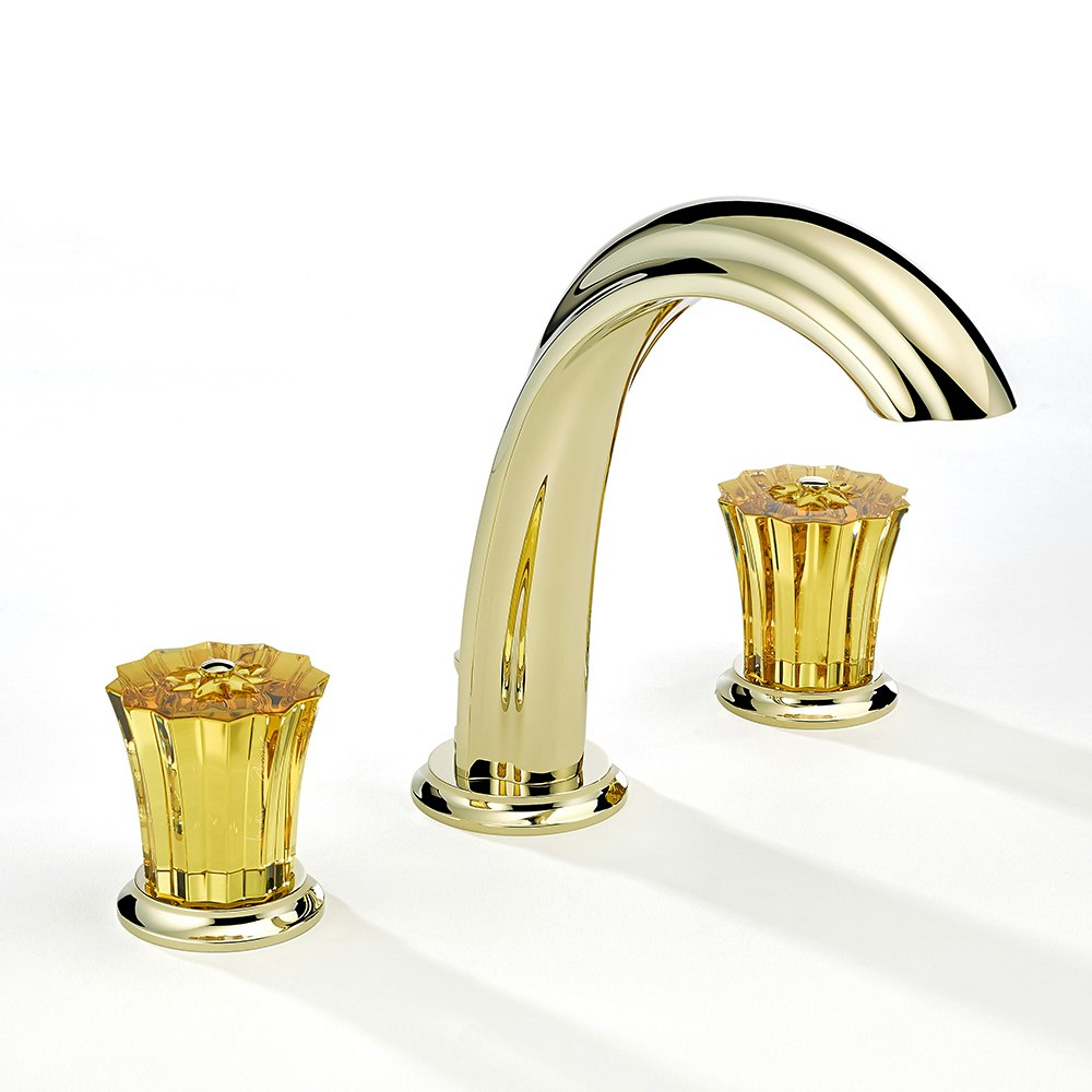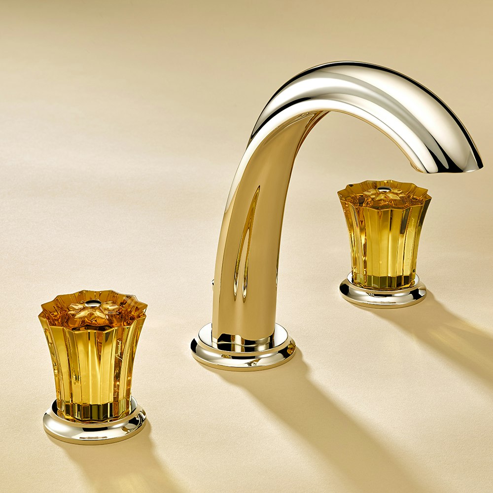 Смеситель для раковины THG Mille Nuits - Champagne crystal на три отверстия устанавливаемый на борту с донным клапаном