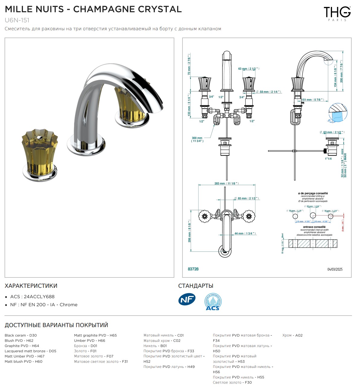Смеситель для раковины THG Mille Nuits - Champagne crystal на три отверстия устанавливаемый на борту с донным клапаном коллекции Смесители THG Mille Nuits - Champagne crystal можно купить по розничной цене в нашем шоу-руме в Москве по адресу ул. Дениса Давыдова, д. 4 или через наш интернет-магазин StudioArdo.