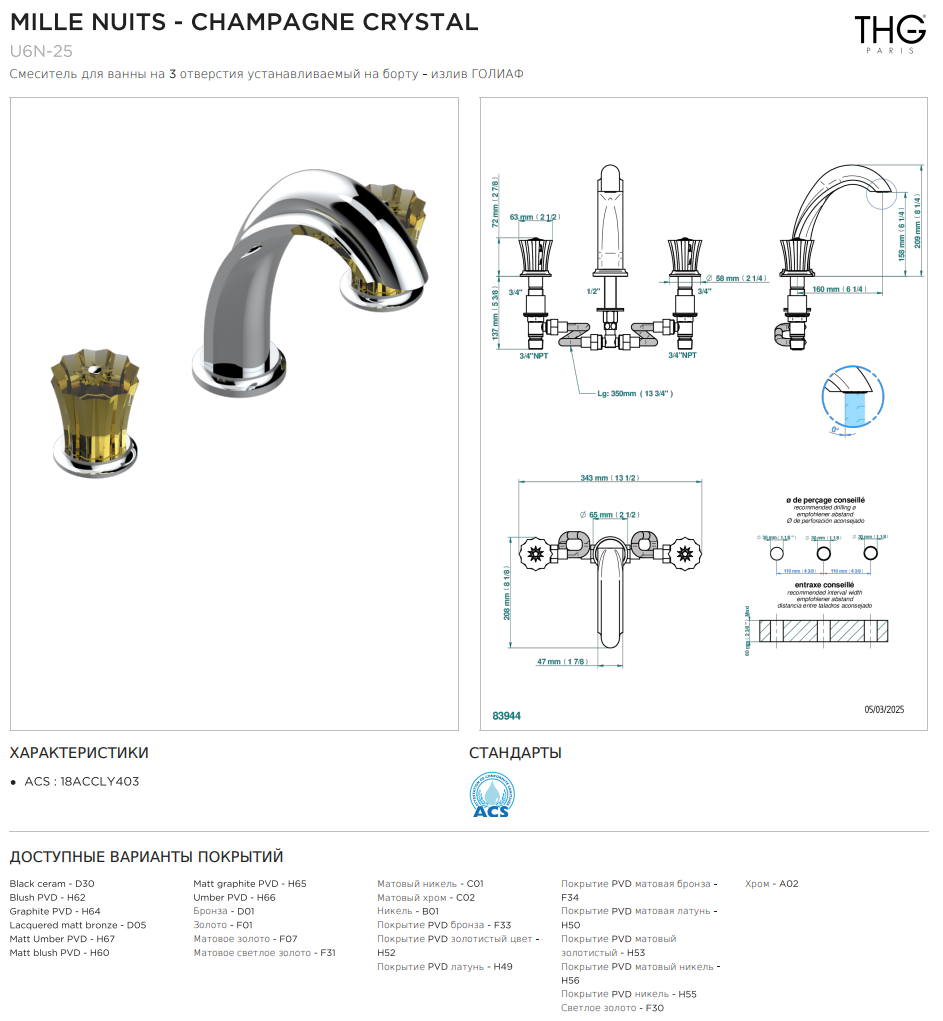 Смеситель для ванны THG Mille Nuits - Champagne crystal на 3 отверстия устанавливаемый на борту - излив ГОЛИАФ коллекции Смесители THG Mille Nuits - Champagne crystal можно купить по розничной цене в нашем шоу-руме в Москве по адресу ул. Дениса Давыдова, д. 4 или через наш интернет-магазин StudioArdo.