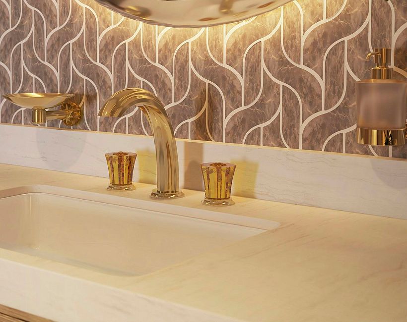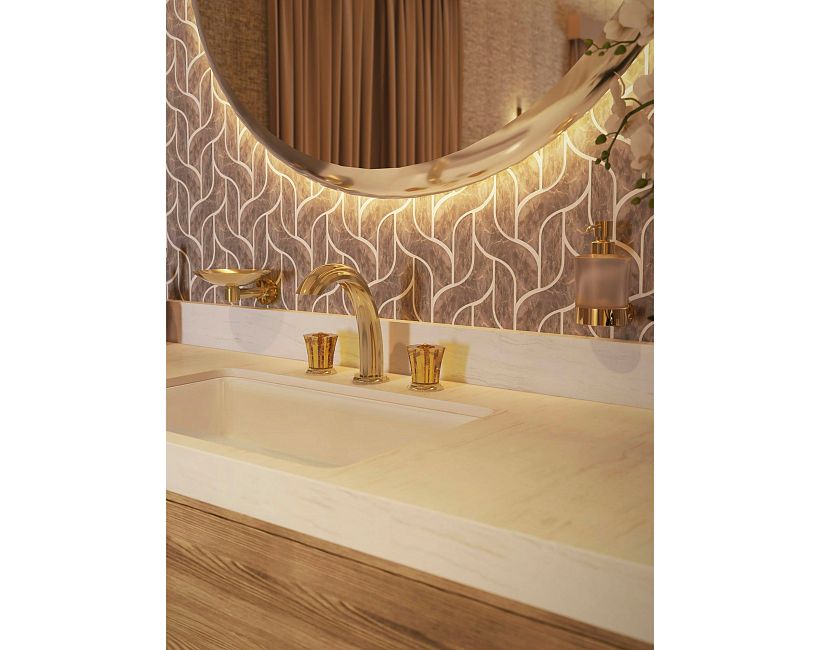 Смеситель THG Mille Nuits - Champagne crystal устанавливаемый на борту раковины на три отверстия с донным клапаном